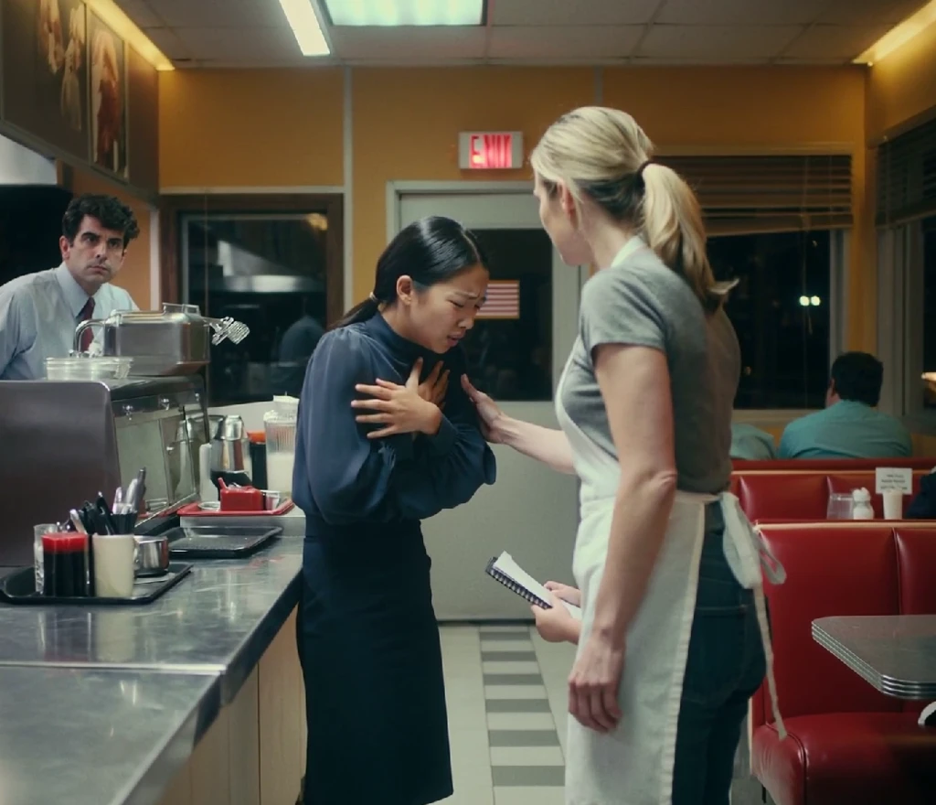 The other diners stared at her with blank, confused faces. An elderly man in a trucker cap tilted his head like he was trying to solve a puzzle. A young couple in the corner booth whispered nervously to each other, the woman pulling out her phone. The muscular cook behind the counter wiped his hands on his apron, looking helpless.