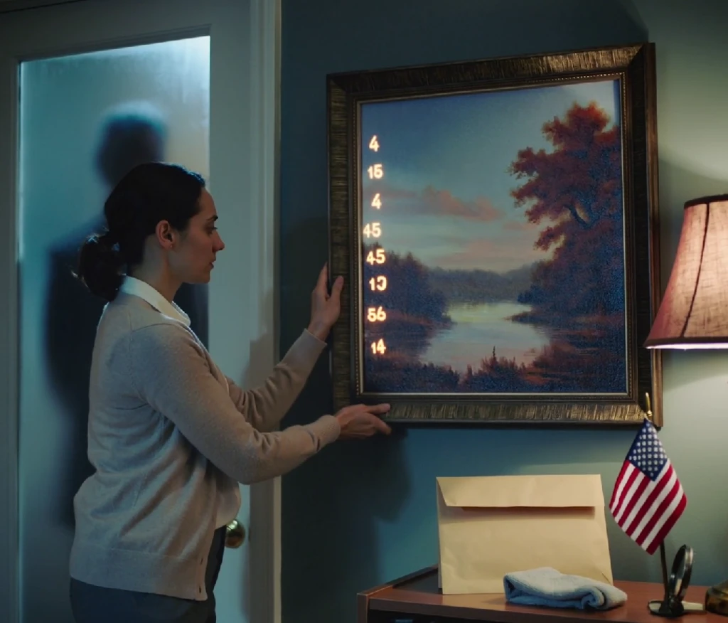 I held the painting close, my hands shaking in the dim light of my bedroom. Those geometric shapes seemed to glow faintly, and then I saw it: a pattern I’d missed before. The shapes weren’t random at all. They formed numbers—hidden so cleverly in the forest scene that you’d never notice unless you knew exactly what to look for.