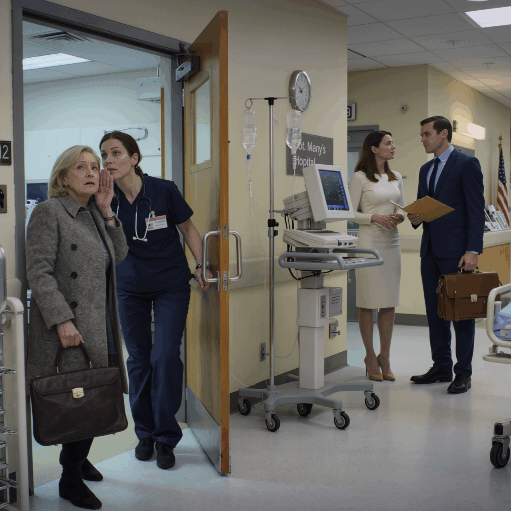 I stayed there, paralyzed behind that door, my heart now beating for completely different reasons. It was no longer just fear for my son. It was something else, something dark and heavy I couldn’t name yet. The room was empty, dim. It smelled of clean sheets and that artificial air conditioning that dries your mouth. I leaned against the wall, trying to process what had just happened, trying to understand why a strange nurse had hidden me as if I were in danger.