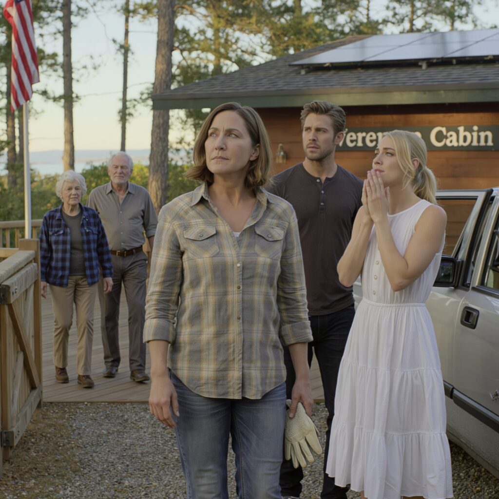 We stood in the same air like new acquaintances. Her eyes kept scanning—solar panels, rain barrels, the glint of a steel bracket under the eaves. She reached out and touched the cabin wall like a child checking if something is real.