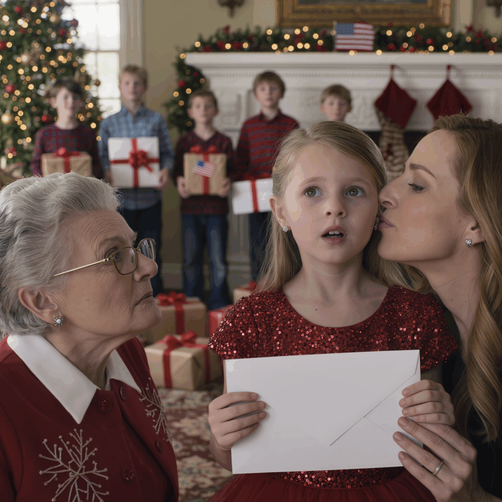 The room froze. No one moved. No one spoke. The only sound was the pop of the fireplace behind us. I looked at her hands, small and steady, gripping that envelope like it was armor. I had tucked it deep in her drawer two years ago. I never told her what was inside. I hadn’t even known she’d found it. But somehow she knew. And now, with every eye on her, she began to open it.