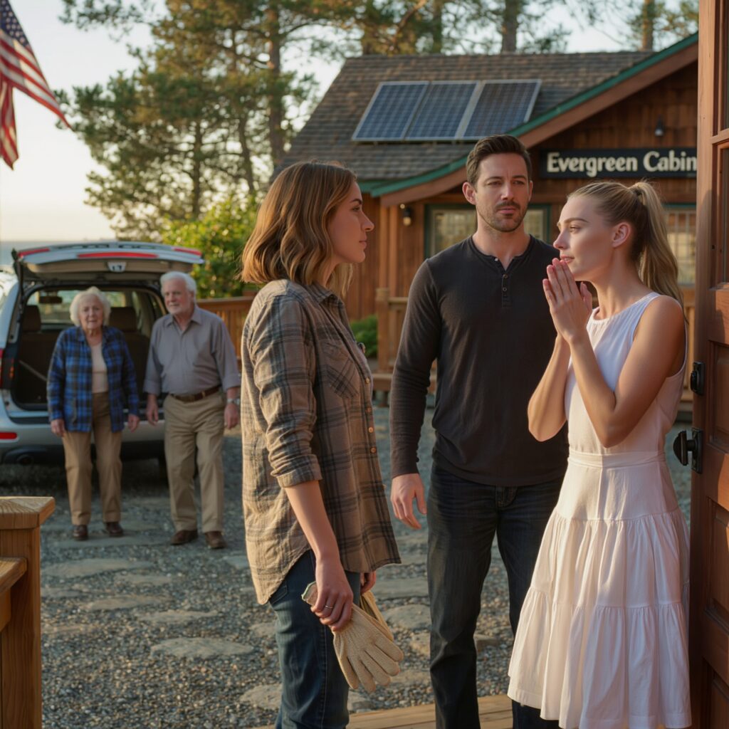 We stood in the same air like new acquaintances. Her eyes kept scanning—solar panels, rain barrels, the glint of a steel bracket under the eaves. She reached out and touched the cabin wall like a child checking if something is real.
